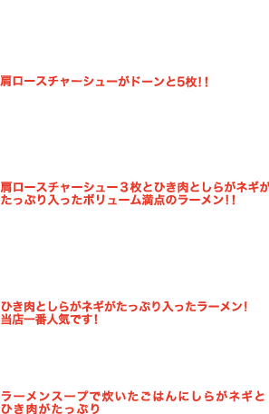 自家製の肩ロースの柔らかチャーシューが3枚もトッピング!
